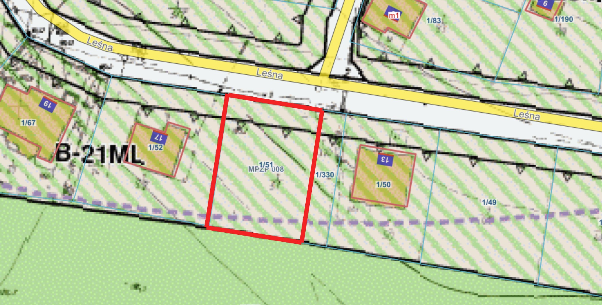 Na sprzedaż działka nr 1/51 położona przy ul. Leśnej w Turawie, w spokojnej i zielonej