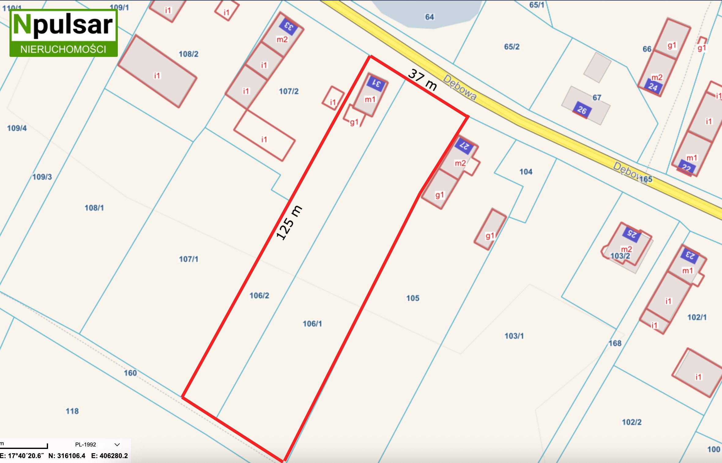 Na sprzedaż nieruchomość gruntowa składająca się z dwóch działek ewidencyjnych nr 106/1 oraz 106/2, o
